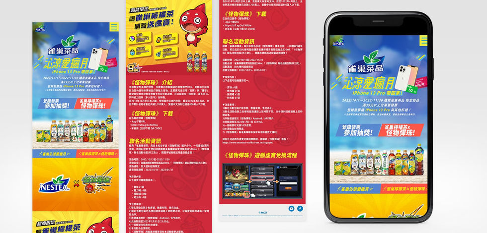 根據每年的不同活動,我們進行活動視覺設計,展示雀巢茶品年輕多元的風格,以提升品牌知名度和忠誠度。同時,我們持續激發消費者對雀巢檸檬茶的興趣和參與度。為了吸引不同族群的參與,我們為每波活動設計了不同的主題,確保能夠吸引到更廣泛的受眾。